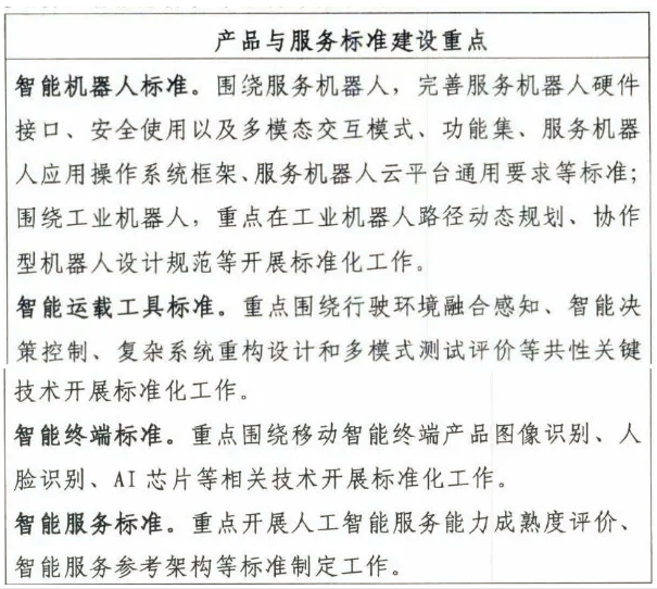 產(chǎn)品與服務(wù)標(biāo)準(zhǔn)包括智能機器人、智能運載工具、智能終端、智能服務(wù)等部分,如圖8所示。