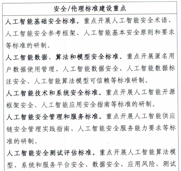 1.安全與隱私保護標(biāo)準(zhǔn)。包括基礎(chǔ)安全,數(shù)據(jù)、算法和模型安全,技術(shù)和系統(tǒng)安全,安全管理和服務(wù),安全測試評估,產(chǎn)品和應(yīng)用安全等六個部分。