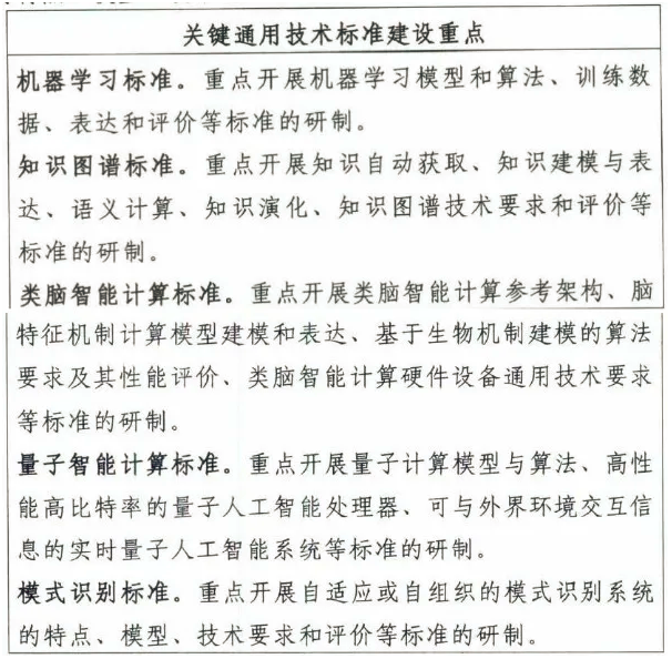 D關(guān)鍵通用技術(shù)標(biāo)準(zhǔn)主要圍繞機器學(xué)習(xí)、知識圖譜、類腦智能計算、量子智能計算、模式識別等方面,為人工智能應(yīng)用提供通用技術(shù)支撐;