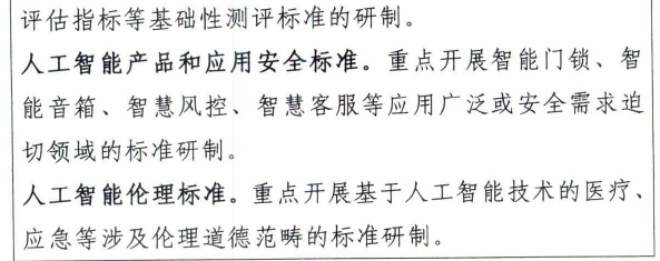 人工智能產(chǎn)品和應(yīng)用安全標(biāo)準(zhǔn)主要是為保障人工智能技術(shù)、服務(wù)和產(chǎn)品在具體應(yīng)用場景下的安全,可面向智能門鎖、智能音響、智慧風(fēng)控、智慧客服等應(yīng)用成熟、使用廣泛或安全需求迫切的領(lǐng)域進行標(biāo)準(zhǔn)研制。