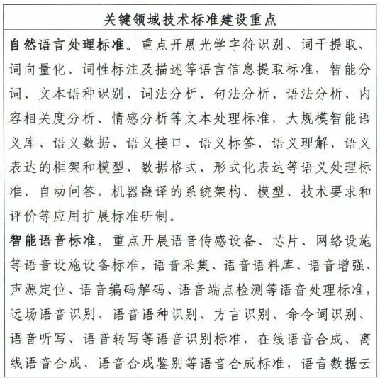 4.智能服務(wù)標(biāo)準(zhǔn)。包括圖像識別、智能語音、自然語言處理、機器學(xué)習(xí)算法等標(biāo)準(zhǔn)。重點開展人工智能服務(wù)能力成熟度評價、智能服務(wù)參考架構(gòu)等標(biāo)準(zhǔn)制定工作。