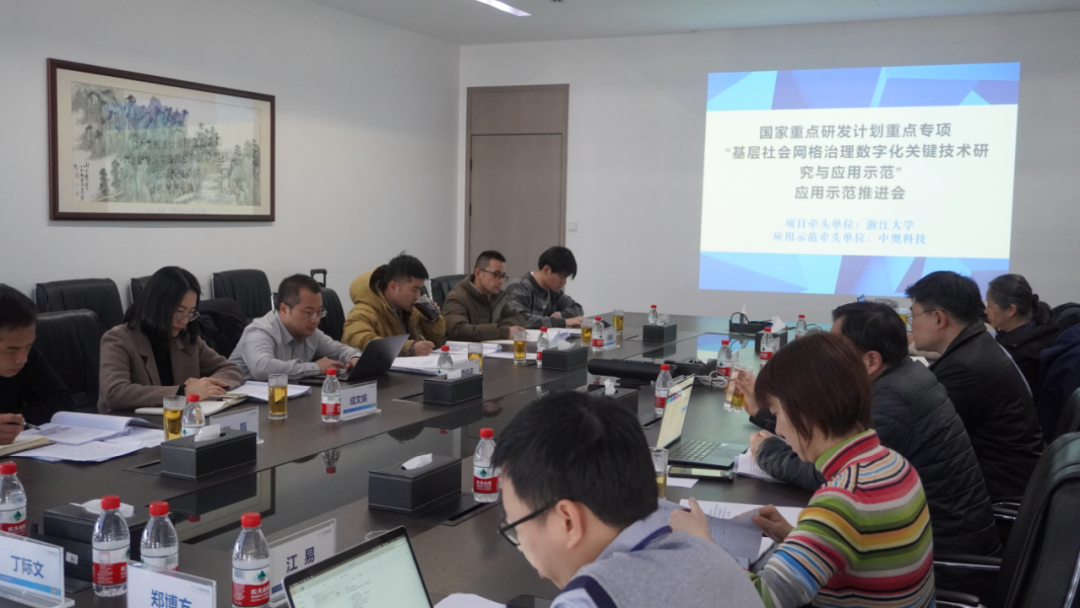 1月24日,為貫徹科技創(chuàng)新支撐平安中國建設(shè)戰(zhàn)略總體目標(biāo),推進(jìn)課題應(yīng)用示范進(jìn)程,由浙江大學(xué)牽頭、同濟(jì)大學(xué)、東北大學(xué)、杭州中奧科技有限公司、浙江大華技術(shù)股份有限公司、華院數(shù)據(jù)技術(shù)(上海)有限公司、杭州天闕科技有限公司、成都數(shù)之聯(lián)科技股份有限公司共同參與的“基層社會網(wǎng)格治理數(shù)字化關(guān)鍵技術(shù)研究與應(yīng)用示范”項目應(yīng)用示范推進(jìn)會在杭州中奧科技會議室舉行。